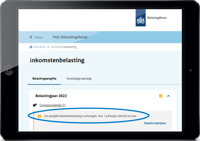 U kunt zelf nakijken of uw aangifte binnen is in Mijn Belastingdienst.