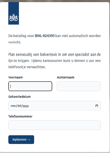 De volledige tekst op de afbeelding:“De betaling van BNL-824395 kan niet automatisch worden verricht.